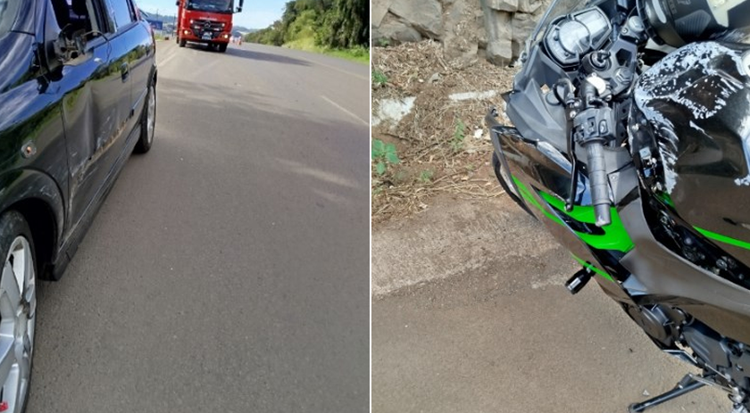 A ocorrência envolveu um carro e uma motocicleta. De acordo com os bombeiros, o piloto da moto, de 24 anos, apresentava escoriações nos braços. Estava consciente e orientado, com suspeita de fratura em um dos dedos.