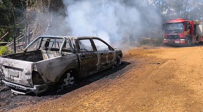 O condutor do veículo, um homem de 42 anos, se encontrava próximo ao local e relatou que estava cortando lenha quando ouviu estalos vindos do SUV e, ao verificar, percebeu que o veículo já estava em chamas.