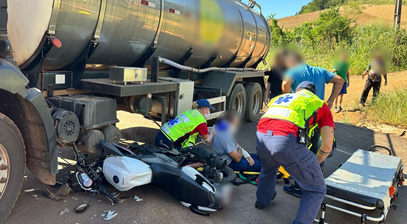 Motociclista fica ferido após colisão com caminhão de leite na BR-282