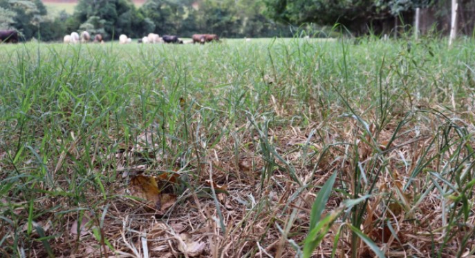 Além disso, o gado de corte enfrenta dificuldades com o abastecimento de água e pastagem, castigada pelo tempo seco. A falta de chuvas também afetou a colheita de soja. "Não chove para ‘mexer a água’ desde dezembro de 2024", relatou o produtor, destacando que, embora o sistema de cisterna da propriedade seja robusto, ele já está vazio devido à falta de chuvas. As fontes da propriedade são protegidas, mas não têm mais fornecido água suficiente, e a pequena sanga que passava pelo local está praticamente seca, com apenas algumas poças.