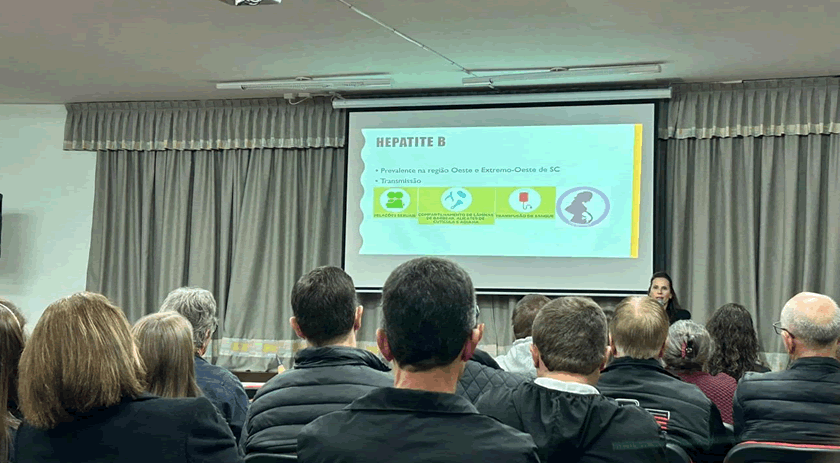 Em alusão ao Julho Amarelo – mês dedicado à prevenção e combate das hepatites virais –, a Secretaria Municipal de Saúde de São Miguel do Oeste promoveu, nesta semana, uma palestra especial voltada à conscientização da população sobre o tema. O evento reuniu a infectologista Dra. Priscila Garrido e a psicóloga Marília Klafke Neitzke, que abordaram os aspectos clínicos e emocionais relacionados ao diagnóstico e tratamento das hepatites.