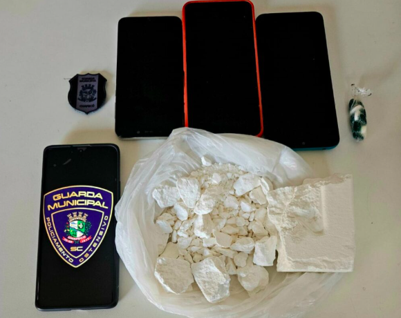Durante a revista pessoal, os guardas encontraram uma embalagem plástica com cerca de 300 gramas de substância análoga à cocaína. Também foram apreendidos três celulares. No interior do carro estava a mãe do abordado, uma idosa de 62 anos.