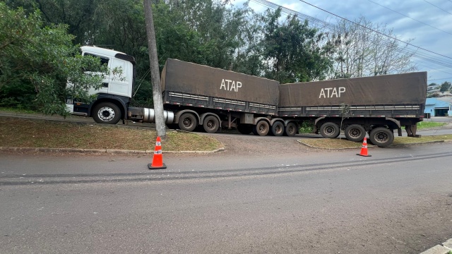 Na tarde de segunda-feira (18), uma carreta carregada com milho quase causou um acidente na Avenida Salgado Filho, em São Miguel do Oeste, após não conseguir vencer a subida íngreme e retornar em ré pela via.
