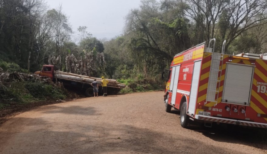 Um acidente de trânsito envolvendo um caminhão Mercedes Benz 1313 foi registrado na manhã desta quarta-feira (3) na Linha Sede Flores, no interior de Guaraciaba. O veículo saiu da pista e colidiu contra um barranco.