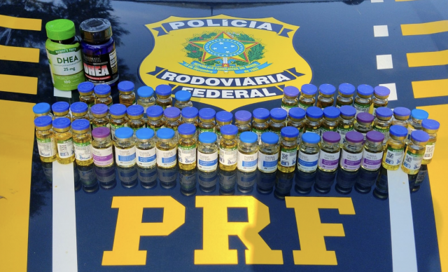 A Polícia Rodoviária Federal (PRF) apreendeu neste domingo (14) dezenas de frascos de anabolizantes e outros produtos sem comprovação de importação regular durante fiscalização na BR-282, em Chapecó.