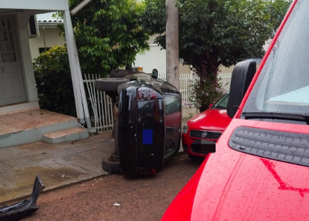 Uma menina de 2 anos saiu ilesa após o carro em que estava descer uma rampa e capotar, na manhã desta segunda-feira, dia 15, no Centro de São Carlos, no Oeste catarinense.