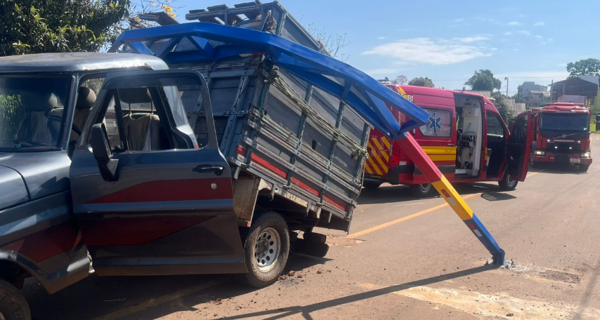 Na tarde de terça-feira (16), por volta das 13h45, o Corpo de Bombeiros Militar de Campo Erê atendeu um acidente de trânsito na Rua 31 de Março, no centro da cidade. O caso envolveu uma caminhonete Ford F-1000 Boiadeira, com placas Mercosul, que colidiu contra um pórtico metálico.