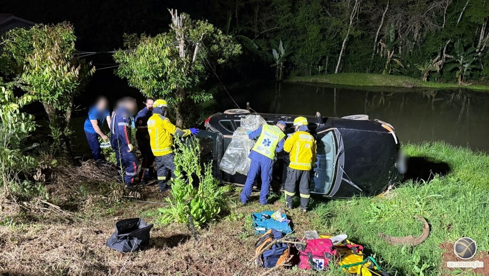 Acidente ocorreu na Linha Santa Catarina na noite de sábado (18); Vítimas foram socorridas, e a Polícia Militar investiga a fuga do condutor, que teria consumido bebidas alcoólicas.