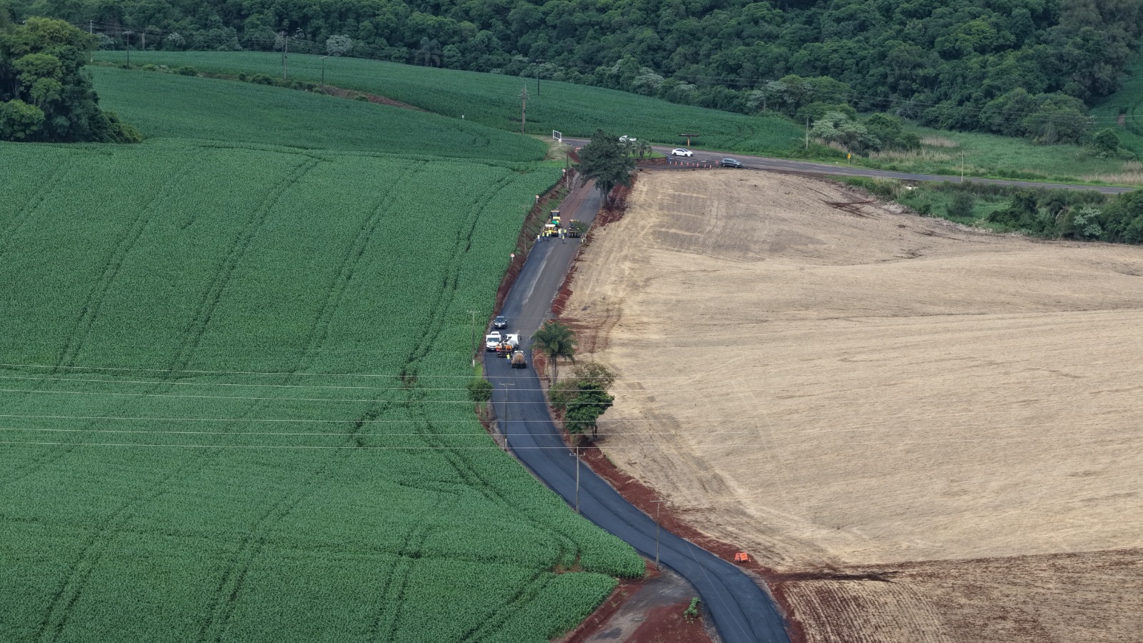A pavimentação asfáltica na rodovia XRE-501, que dá acesso à comunidade da Linha São Lourenço, interior de Xanxerê está em fase de desenvolvimento.