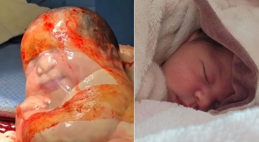 O tão esperado dia chegou, e a emoção tomou conta da sala de cirurgia. “Fui presenteada de uma maneira que não sei explicar. Foi surreal. Ela nascer empelicada foi um grande presente depois de tudo o que passamos — e por eu ser mãe solo”, disse a mãe.