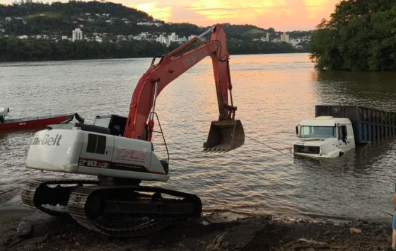 Caminhão cai no Rio Uruguai após pane mecânica