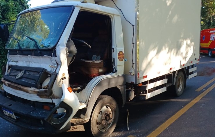 Segundo o Corpo de Bombeiros, no local foi constatada uma colisão envolvendo três caminhões, sendo que o motorista do último veículo estava preso nas ferragens da cabine.