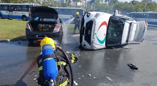 Carro que levava órgãos para transplante sofre acidente com incêndio e feridos