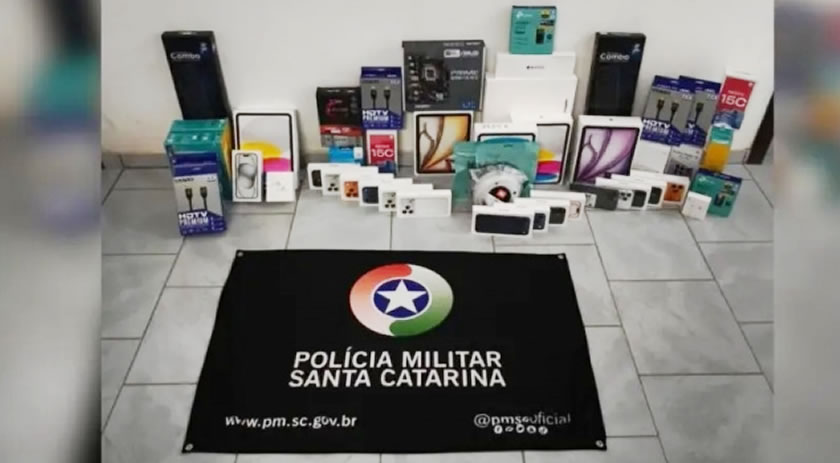 Durante a busca no Jeep Compass, os policiais encontraram eletrônicos escondidos sob os bancos e dentro de um travesseiro. Foram localizados cinco iPhones, um MacBook, iPads e acessórios, avaliados em cerca de R$ 84 mil no mercado nacional.