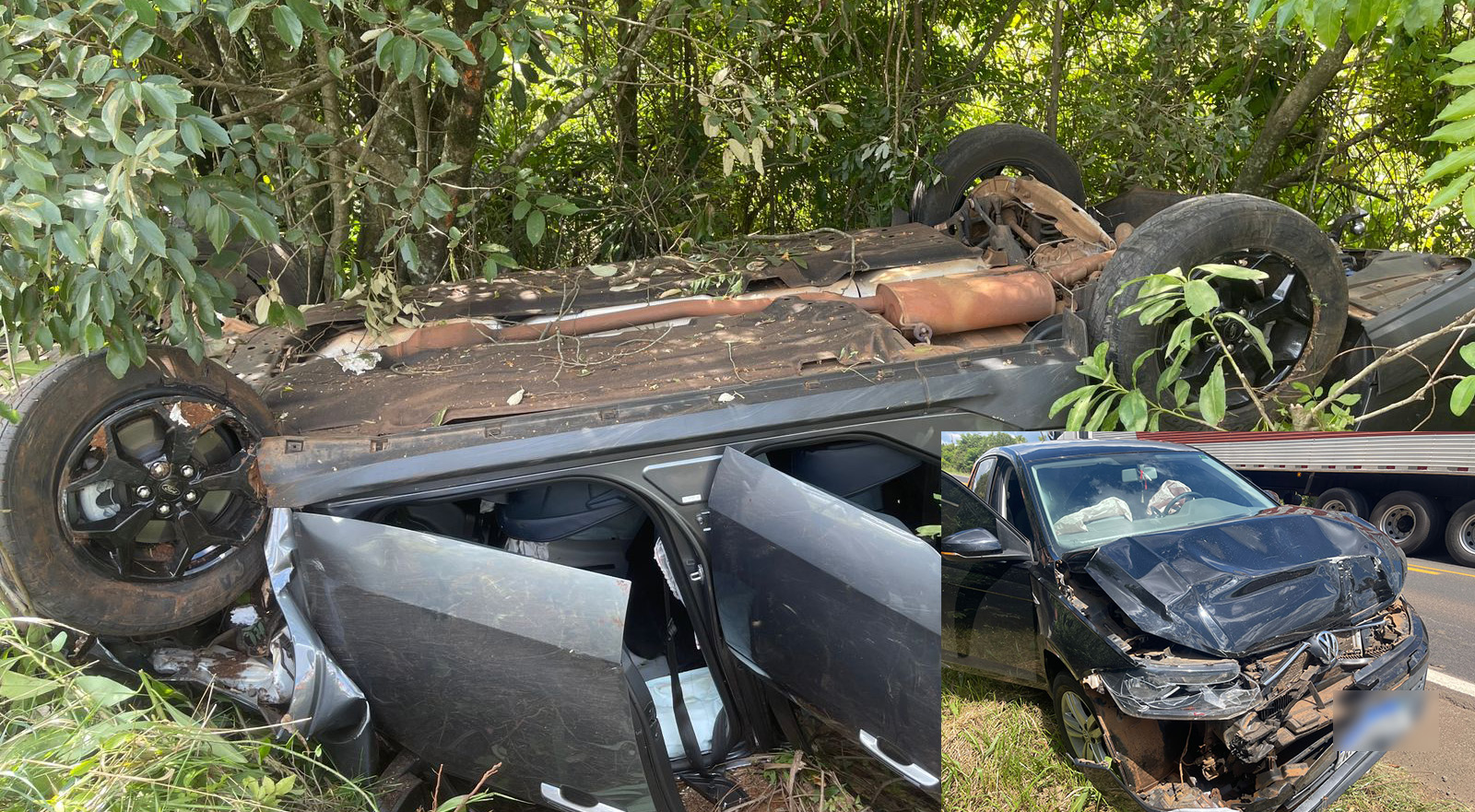 De acordo com as informações apuradas no local, os dois veículos seguiam no sentido ao centro da cidade quando o Polo colidiu na traseira da caminhonete. Com a força do impacto, a Maverick saiu da pista e capotou às margens da rodovia.
