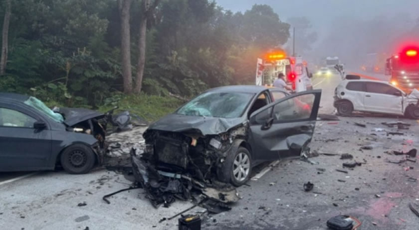 Uma ultrapassagem em local proibido provocou um acidente envolvendo cinco veículos na manhã desta sexta-feira (6) na rodovia SC-A280C, em São Bento do Sul. A ocorrência foi registrada por volta das 5h40.