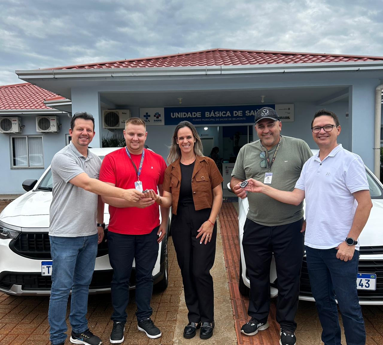 A saúde de Belmonte segue avançando! Nesta quarta-feira (15), o prefeito Jair Giumbelli, acompanhado da secretária de Saúde Juliana Scaranti e dos motoristas do setor, realizou a entrega de dois veículos 0 km que passam a integrar a frota da Secretaria Municipal de Saúde.