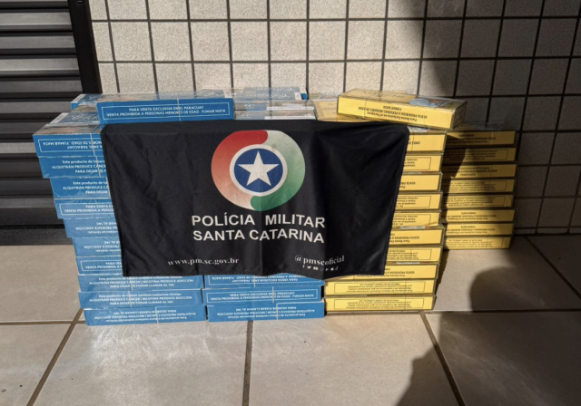 A Polícia Militar prendeu um homem de 50 anos por contrabando na tarde desta segunda-feira (27), após localizar pacotes de cigarros de origem estrangeira em Palma Sola e Dionísio Cerqueira.