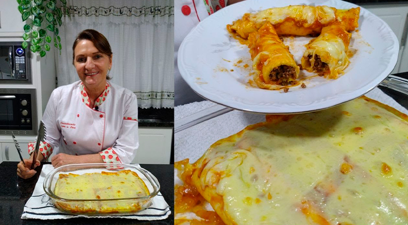 Até no molho você pode variar. Nessa receita Dete ensina você a fazer a massa, o recheio de carne moída com um molho rápido de tomates. Mas, você pode mudar a seu gosto, fazer com frango ou até com molho branco que fica uma delícia.